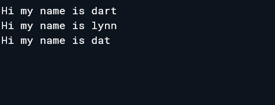 print("Hi my name is ${this.name}");